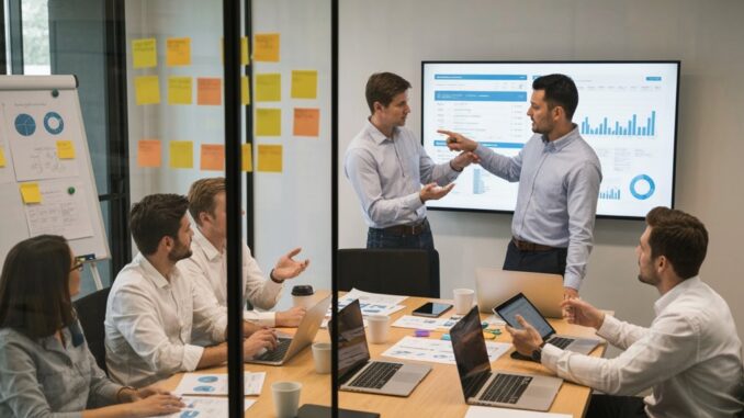 Oft etablieren Teams eine vorhersehbare Rhythmusfolge aus Stand-ups und strukturierten Update-Kanälen, um den Fortschritt zu synchronisieren und Blocker frühzeitig sichtbar zu machen. Die Praxis konzentriert sich auf kurze, fokussierte Meetings und leichte schriftliche Updates, die das Tempo halten, ohne Zeit zu verschwenden. Stand-ups heben tägliche Erfolge hervor, identifizieren Hindernisse und legen klare unmittelbare Maßnahmen fest; regelmäßige kurze Retrospektiven erfassen Erkenntnisse und verbessern den Rhythmus. Schriftliche Kanäle bewahren den Kontext und bieten durchsuchbare Aufzeichnungen für Stakeholder.